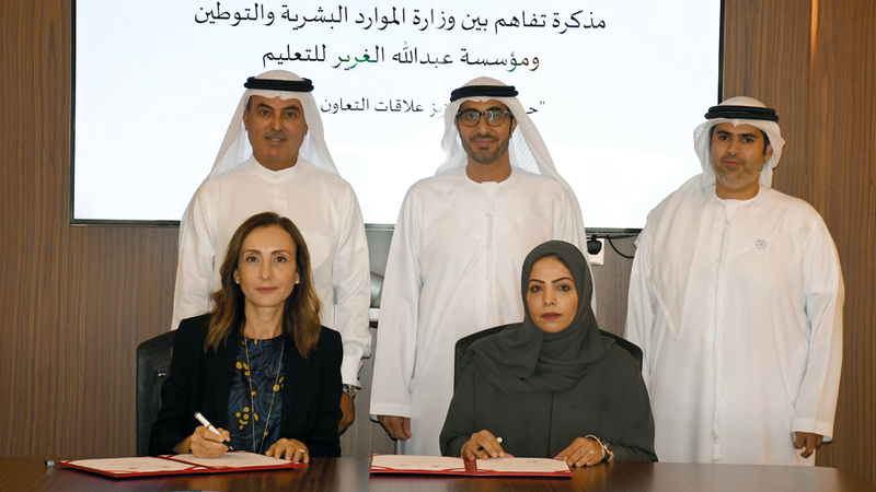 المذكرة تم توقيعها بين وزارة الموارد البشرية والتوطين ومؤسسة عبدالله الغرير للتعليم. من المصدر