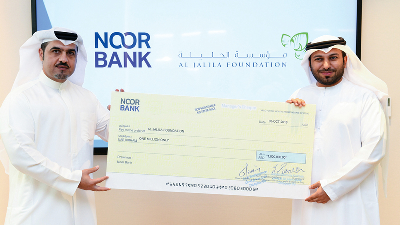«نور بنك» يدعم مؤسسة «الجليلة» بمليون درهم