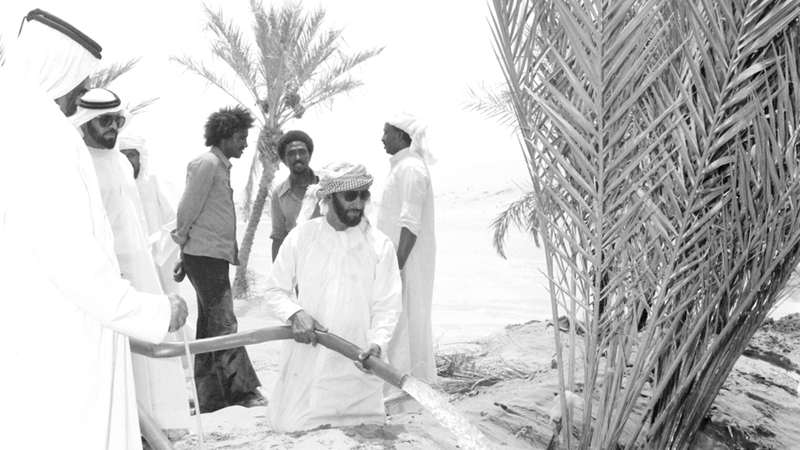 وأضاف: «كان حلم زايد أن يحول الصحراء إلى واحة خضراء، تنبت فيها كل أنواع النباتات والأشجار، وجاء بالمهندسين وأصحاب الخبرة، وقالوا للشيخ زايد إن المنطقة الغربية لا تصلح للزراعة، بسبب ارتفاع نسبة الملوحة فيها، ولكنه لم ييأس، رحمه الله، بل أمر بجلب التربة الصالحة للزراعة وتسوية الأراضي. وبفضل حكمته وإصراره أصبحت المنطقة الغربية واحة غناء، تشع بنور البساتين وواحات النخيل.وعندما أمر الشيخ زايد بتوزيع مزارع على المواطنين في المنطقة الغربية، قال إن عدد أشجار النخيل في كل مزرعة يجب ألا يقل عن 200 شجرة، حتى يحث المواطنين على الاهتمام بالزراعة والعمل والإنتاج. واليوم تنتج المزارع من سبعة إلى 10 أطنان من التمور».