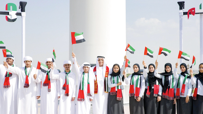 وقام صاحب السمو حاكم رأس الخيمة وسمو ولي عهده برفع علم الدولة في منطقة سارية العلم على كورنيش القواسم برأس الخيمة، بمشاركة مجموعة من طلاب المدارس.