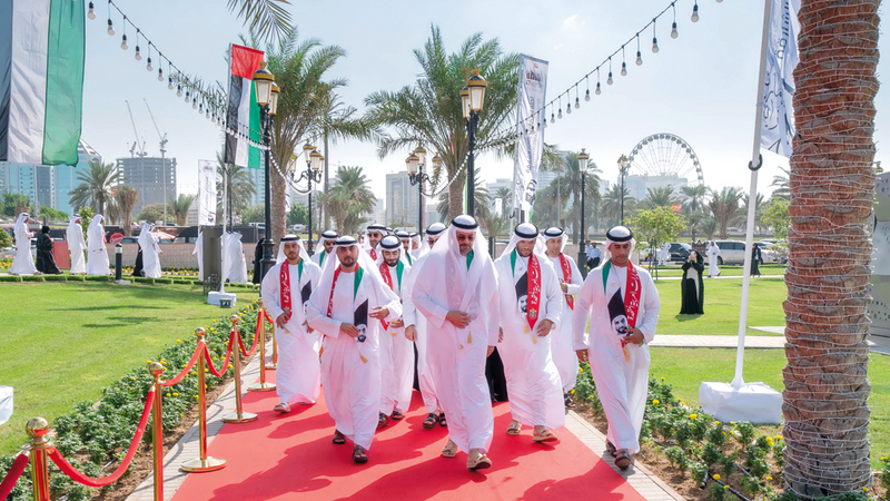شهد سمو الشيخ سلطان بن محمد بن سلطان القاسمي، ولي عهد ونائب حاكم الشارقة رئيس المجلس التنفيذي، احتفالات إمارة الشارقة بيوم العلم الذي نظمته لجنة احتفالات الشارقة باليوم الوطني الـ47 للدولة، صباح أمس، في جزيرة العلم.