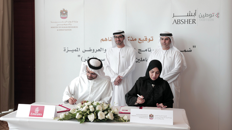 خلال توقيع مذكرات تفاهم اضيفت بموجبها عروض جديدة لـ«ابشر». من المصدر