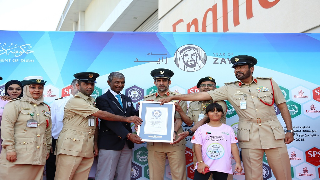 تسلم القائد العام لشرطة دبي اللواء عبدالله خليفة المري من برافين بوتيل، محكم رسمي في جينيس للأرقام القياسية، شهادة تحطيم شرطة دبي، ضمن تحدي دبي للياقة، الرقم القياسي لموسوعة جينيس للأرقام القياسية في سحب طائرة تابعة لطيران الإمارات من نوع بوينغ 777-300 أي ار من قبل 77 من العنصر النسائي في شرطة دبي لمسافة اكثر من 100 متر.