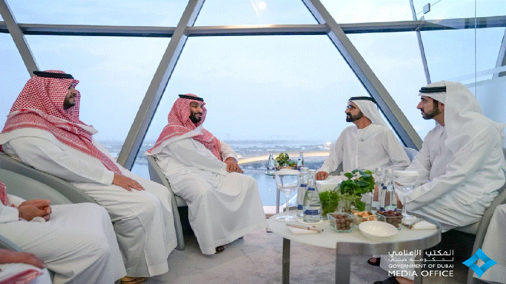 وكان صاحب السمو الشيخ محمد بن راشد آل مكتوم نائب رئيس الدولة رئيس مجلس الوزراء حاكم دبي، قد التقى، اليوم، أخاه صاحب السمو الملكي الأمير محمد بن سلمان آل سعود ولي العهد نائب رئيس مجلس الوزراء وزير الدفاع في المملكة العربية السعودية الشقيقة الذي يزور البلاد حاليا.
