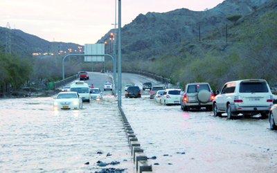 4 بلاغات بدخول مياه الأمطار لمنازل في إمارة رأس الخيمة