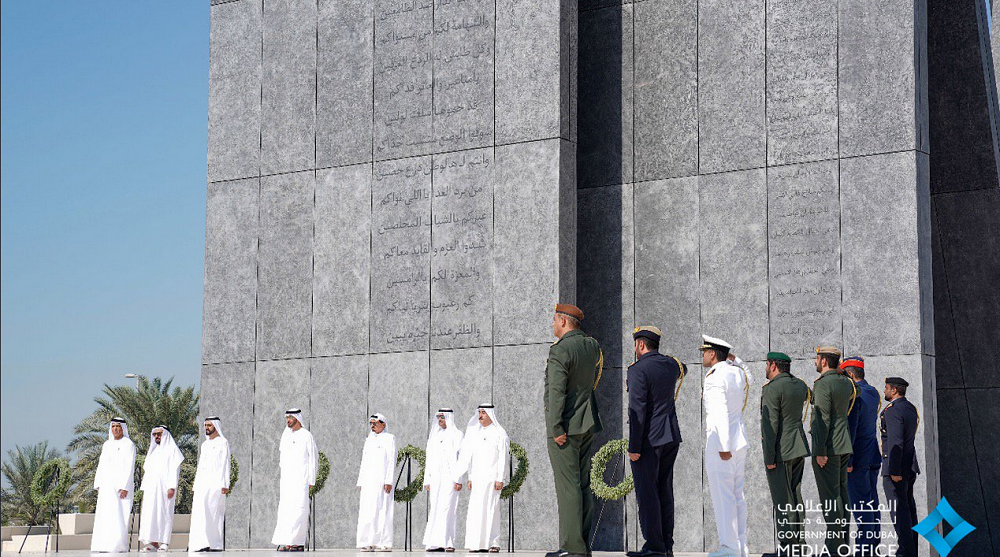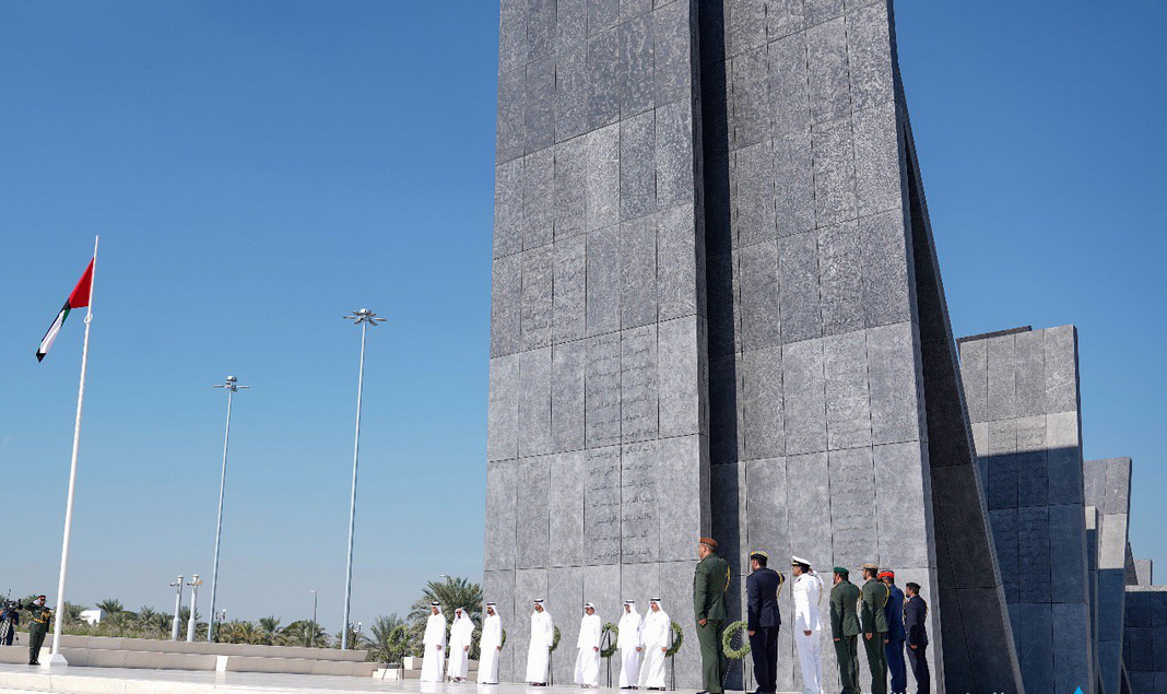 محمد بن راشد ومحمد بن زايد وحكام الإمارات وأولياء العهود يشهدون مراسم "يوم الشهيد" في واحة الكرامة