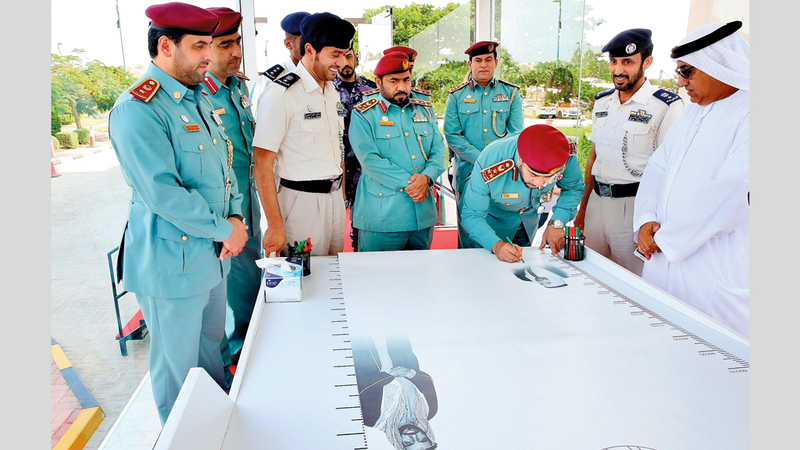 الحديدي وقيادات شرطة رأس الخيمة يوقعون على رسالة الحب. من المصدر