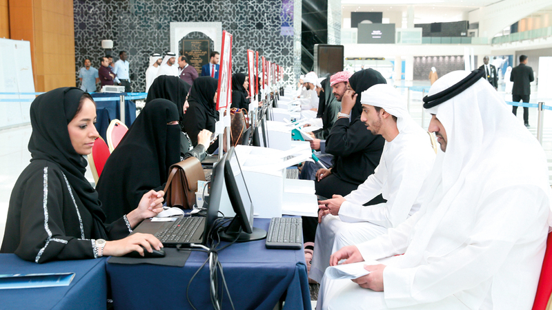 جانب من يوم مفتوح للتوظيف نظمته «التوطين» بالتعاون مع «الخدمة الوطنية». وام