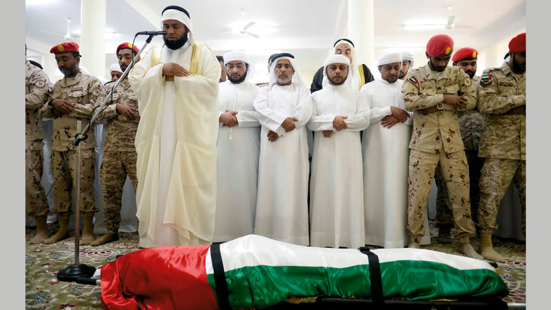 شيَّع مواطنون ومقيمون، مساء أمس، من جامع سعيد مطر الكعبي بمنطقة القرية بإمارة الفجيرة، جنازة الشهيد الطيار صقر سعيد محمد عبدالله اليماحي، الذي استشهد في حادث سقوط مروحية تابعة للمركز الوطني للبحث والإنقاذ، على جبل جيس برأس الخيمة، يوم السبت الماضي.