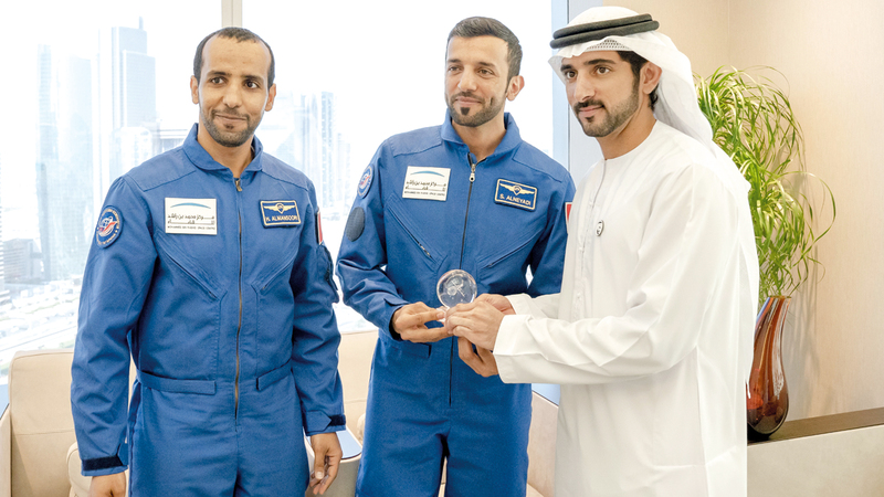 التقى سمو الشيخ حمدان بن محمد بن راشد آل مكتوم، ولي عهد دبي رئيس المجلس التنفيذي رئيس مركز محمد بن راشد للفضاء، أمس، في مكتب سموه بأبراج الإمارات، كلا من هزاع علي المنصوري وسلطان سيف النيادي، أول رائدَي فضاء إماراتيين، ضمن برنامج الإمارات لرواد الفضاء الذي أطلقه صاحب السمو الشيخ محمد بن راشد آل مكتوم، نائب رئيس الدولة رئيس مجلس الوزراء حاكم دبي، وصاحب السمو الشيخ محمد بن زايد آل نهيان، ولي عهد أبوظبي نائب القائد الأعلى للقوات المسلحة، في عام 2017، بهدف تدريب وإعداد فريق من رواد الفضاء الإماراتيين، ومن ثم إرسالهم للقيام بمهام علمية مختلفة في الفضاء.