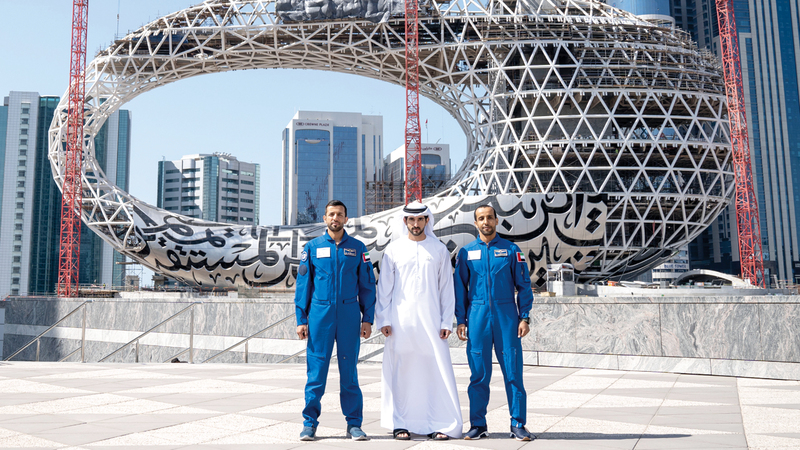 أكد أهمية مهمتهما الوطنية واطلع على مستجدات «برنامج الإمارات الوطني للفضاء»