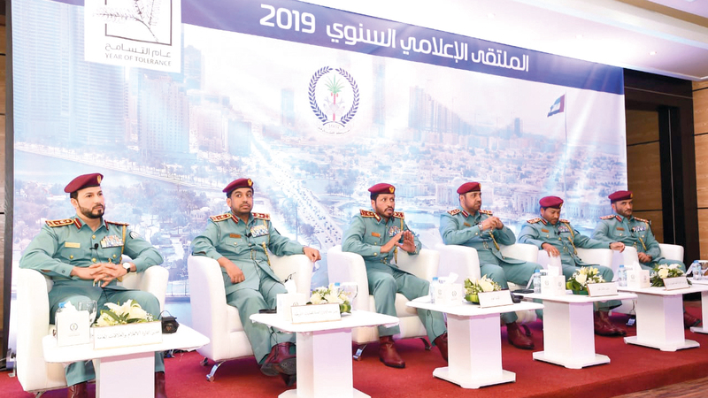 قيادات شرطة الشارقة خلال الملتقى الإعلامي. من المصدر