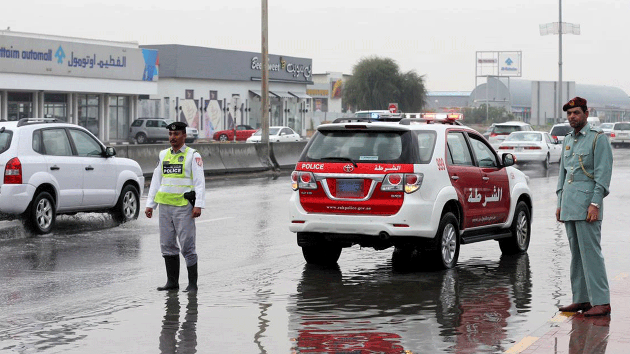 1145 بلاغاً لشرطة رأس الخيمة نتيجة سقوط الإمطار الغزيرة