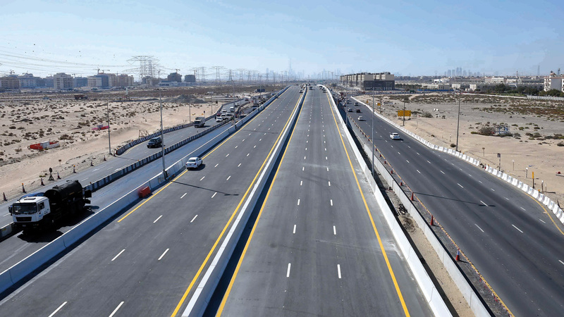 وأوضح أنه «جرت توسعة شارع المنامة في المنطقة الواقعة بين شارع الشيخ محمد بن زايد ومدخل المدينة العالمية، من ثلاثة مسارات في كل اتجاه إلى ستة مسارات في كل اتجاه، وستسهم هذه التوسعة في زيادة الطاقة بنحو 1500 مركبة في الساعة لكل مسار، مع توسعة شارع المنامة في المنطقة الممتدة من مدخل المدينة العالمية حتى شارع الشيخ زايد بن حمدان آل نهيان، من مسارين إلى خمسة مسارات في كل اتجاه، ويتوقع أن تسهم هذه التوسعة في زيادة الطاقة الاستيعابية من 3000 مركبة في الساعة إلى 7500 مركبة».