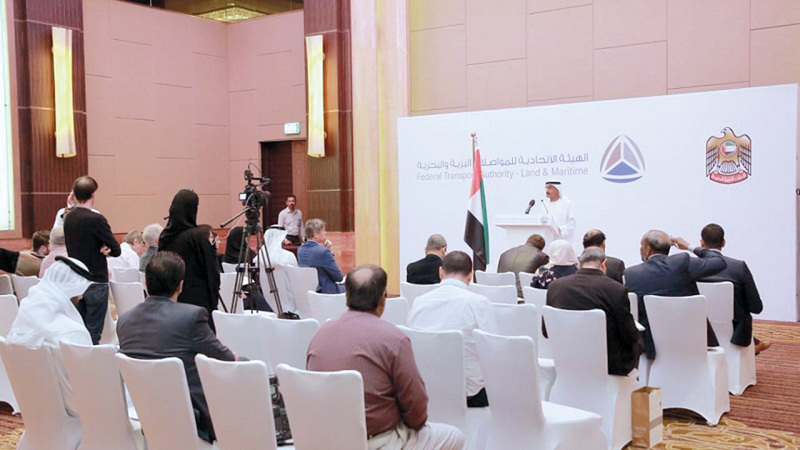 النعيمي خلال إحاطة إعلامية نظّمتها الهيئة الاتحادية للمواصلات البرية والبحرية. من المصدر