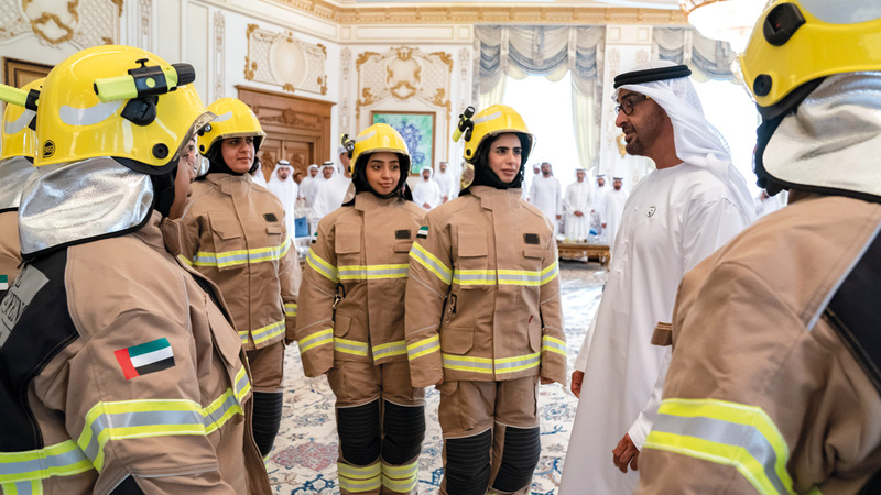 استقبل الدفعة الأولى من «الإطفائيات الإماراتيات» والمشاركات في برنامج «تطوير قدرات المرأة العربية»