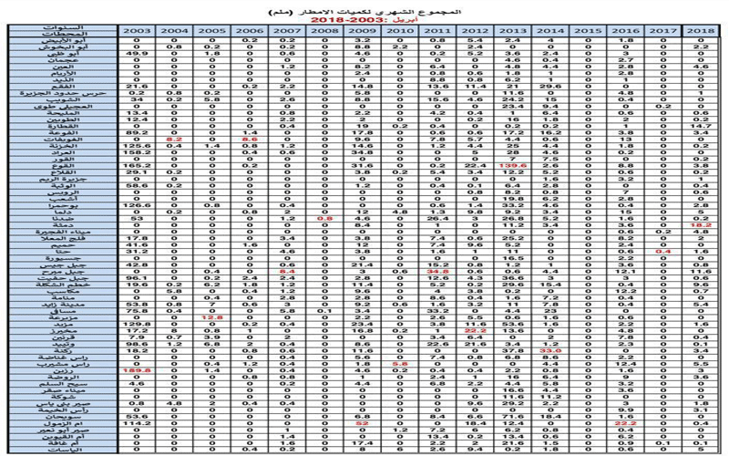 وأبلغ المركز "الإمارات اليوم" أن اضطراب الأحوال الجوية الذي شهدته الدولة مؤخراً، يمكن وصفه بـ"الطبيعي"، لكونه لم يكن الأول من نوعه في هذا الوقت من العام، إذ حدث من قبل عام 2003، حيث سجّلت الدولة كميات أمطار بلغت وقتها 189.8 ملم في منطقة الرزين الواقعة على طريق العين - أبوظبي، وتكررت هذه الحالة عام 2013 بمعدلات أقل نسبياً، حين سجّلت الدولة كميات أمطار بلغت 139.6 ملم .