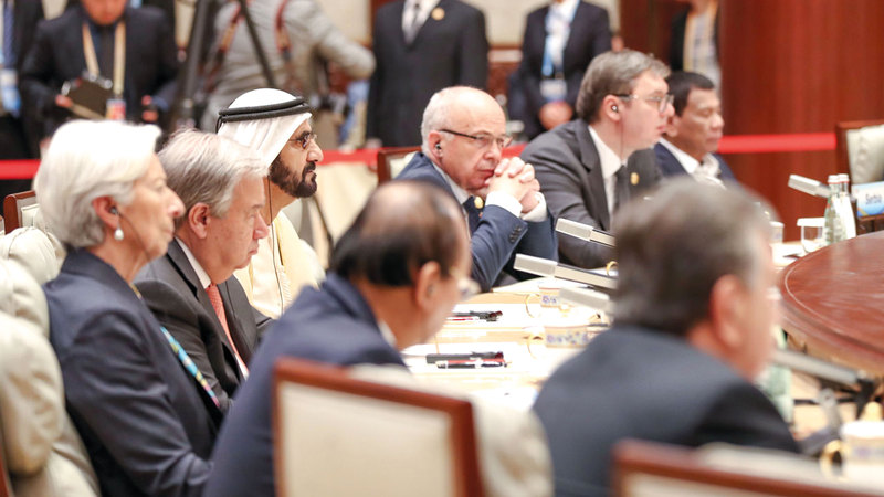 ترأس صاحب السمو الشيخ محمد بن راشد آل مكتوم، نائب رئيس الدولة رئيس مجلس الوزراء حاكم دبي، أمس، وفد دولة الإمارات في اجتماعات قمة المائدة المستديرة لقادة ورؤساء الدول والحكومات، المشاركين في الدورة الثانية لمنتدى الحزام والطريق للتعاون الدولي، التي اختتمت أعمالها أمس، في بكين، بمشاركة دولية واسعة.