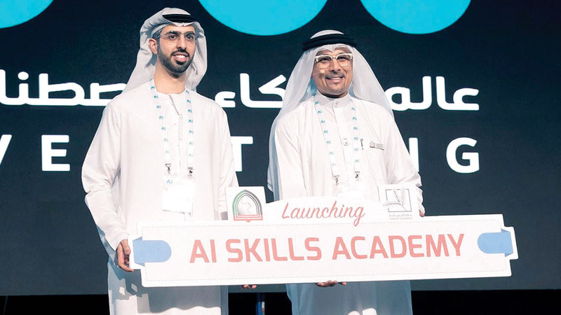 العلماء والشامسي خلال إطلاق أكاديمية الذكاء الاصطناعي. من المصدر