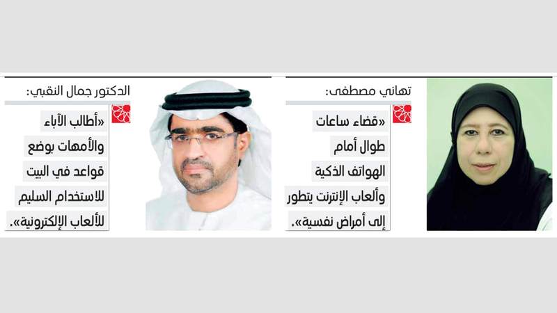 وأكد النقبي أن «الآباء والأمهات هم القدوة، وهم صانعو التغيير في حياة أطفالهم، حيث تقع على عاتقهم المسؤولية، وأطالبهم بوضع قواعد ضمن الأسرة للاستخدام السليم للألعاب الإلكترونية، فضلاً عن إشراك أبنائهم في الألعاب الحركية والنشاطات الاجتماعية والرياضية التي تنمّي مهارات التواصل الاجتماعي ومهاراتهم اللازمة لنموهم وتطورهم الجسدي والعقلي».