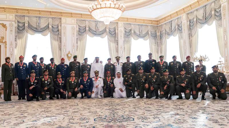 ولي عهد أبوظبي يقلد ضباطاً مشاركين في مهام الواجب «أوسمة الإمارات»