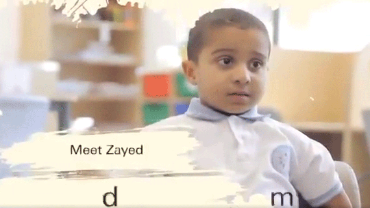 وأكدت معلمة التربية الإسلامية، بمدرسة الكرامة لطلبة التوحد، أن زايد الزعابي، الذ يبلغ من العمر 5 سنوات، يعاني من مرض طيف التوحد، ويدرس بمدرسة الكرامة سكينة محمد، أنها استخدمت مع الطفل زايد استراتيجية التعلم من خلال اللعب، لحفظ القرآن، حيث تم الاستعانة بدمية على شكل دب "دبدوب" يقوم بالنطق ويردد بعده الطفل الكلام لمساعدته على الحفظ.