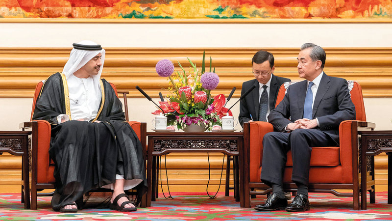 وأشاد مستشار الدولة وزير الخارجية الصيني بالمكانة الرائدة التي تحظى بها دولة الإمارات على المستويين الإقليمي والدولي، مؤكداً على العلاقات الثنائية الوثيقة التي تربط بين دولة الإمارات وجمهورية الصين الشعبية، والحرص المستمر على تعزيز أوجه التعاون المشترك بين البلدين.