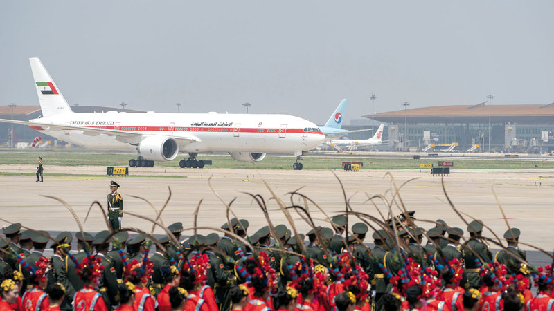 ورافقت وصول صاحب السمو الشيخ محمد بن زايد آل نهيان إلى مطار بكين الدولي، مظاهر احتفال تقليدي وشعبي، مرحبةً بقدوم سموه إلى الصين.