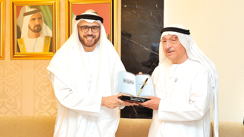 السويدي يمنح القدسي هدية تذكارية. من المصدر