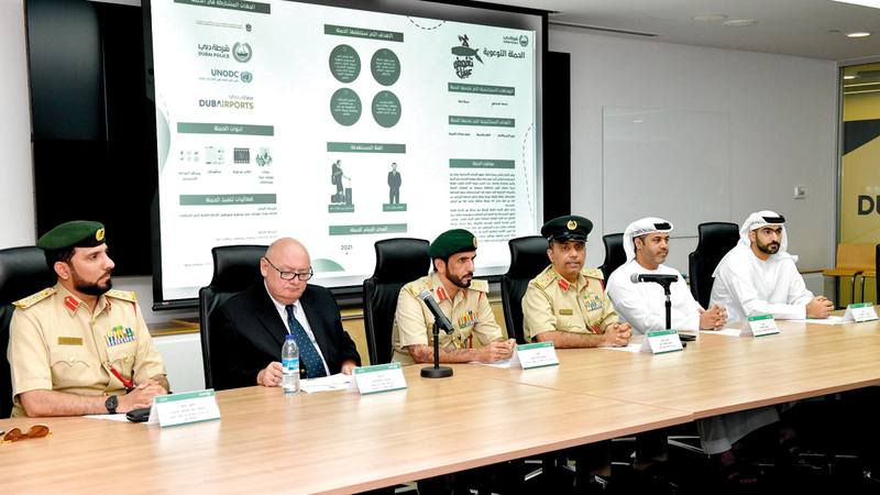 شرطة دبي خلال الإعلان عن إطلاق حملة «لا تغمض عينيك». من المصدر