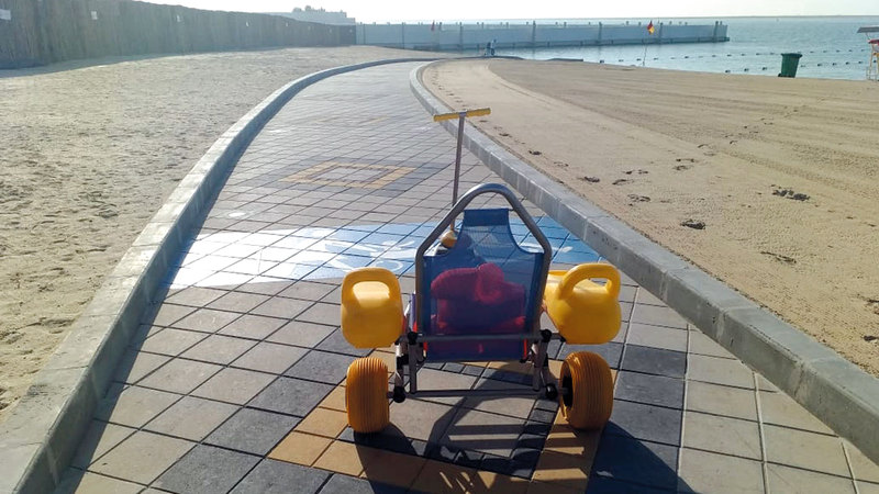 العجلات العائمة تساعد أصحاب الهمم على الدخول لمياه الشاطئ. من المصدر