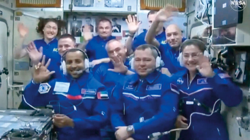 احتفت محطة الفضاء الدولية بوصول هزاع المنصوري، أول رائد فضاء إماراتي وعربي، إليها ضمن فريق علمي يضم رائد الفضاء الروسي أوليغ سكريبوشكا، ورائدة الفضاء الأميركية جاسيكا مير.