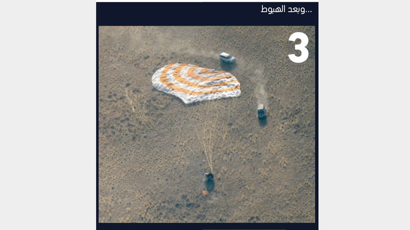 وعاد هزاع المنصوري على متن مركبة «سويوز إم إس 12»، المكوّنة من «الوحدة المدارية»، و«وحدة الالتحام»، و«وحدة الهبوط»، حيث رافقه خلال رحلة العودة، رائدا الفضاء، الروسي أليكسي أوفتشينين، والأميركي نيك هيج، الموجودين في المحطة منذ مارس الماضي.