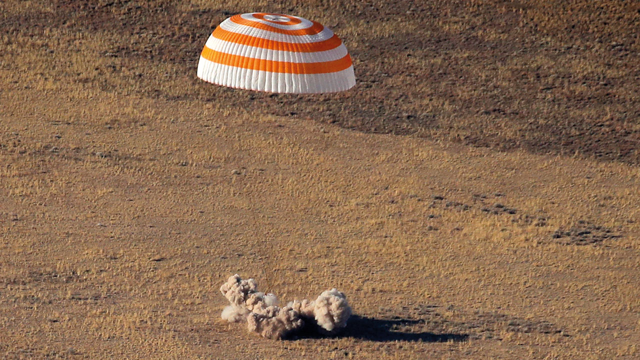 وعقب هبوط المركبة، وتحديد موقعها في منطقة سهلية، هرع فريق من المنقذين المختصين إلى المكان، وتم قطع حبال المظلة، لمنع سحب الرياح للكبسولة، وفتحت صمامات نظام التنفس في المركبة الفضائية، وتمت مساعدة رواد الفضاء وإخراجهم من المركبة.