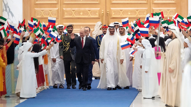 جاء ذلك خلال جلسة مباحثات رسمية عقدها صاحب السمو الشيخ محمد بن زايد آل نهيان، ولي عهد أبوظبي نائب القائد الأعلى للقوات المسلحة، أمس، مع رئيس جمهورية روسيا الاتحادية، فلاديمير بوتين، الذي يقوم بزيارة دولة لدولة الإمارات.