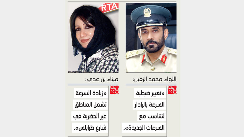قررت هيئة الطرق والمواصلات والقيادة العامة لشرطة دبي زيادة حد السرعة القانونية من 80 إلى 100 كلم/ساعة على شارع طرابلس من شارع الإمارات إلى ما قبل شارع نواكشوط، وزيادة حد السرعة إلى 90 كلم/ساعة من قبل شارع نواكشوط إلى شارع الشيخ محمد بن زايد، ابتداء من غد.