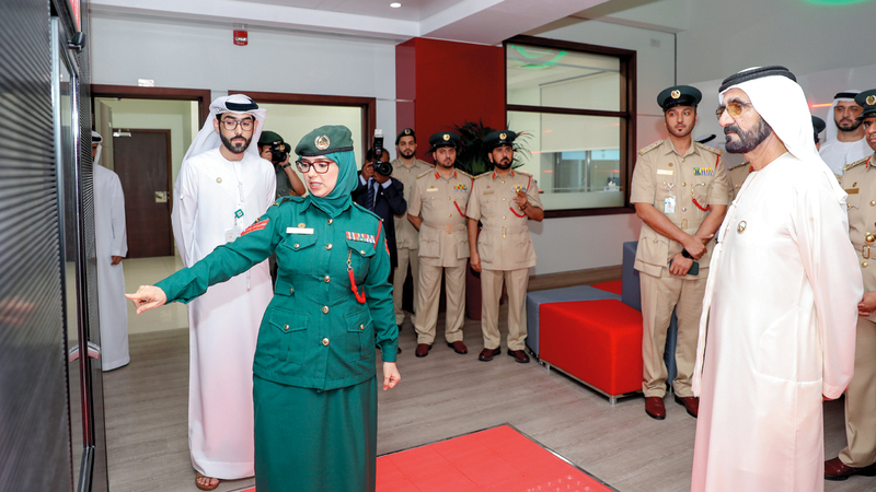 اطّلع صاحب السموّ الشيخ محمد بن راشد آل مكتوم، نائب رئيس الدولة رئيس مجلس الوزراء حاكم دبي، أمس، يرافقه نائب رئيس الشرطة والأمن العام في دبي، الفريق ضاحي خلفان تميم، على مركز الشرطة الذكي، التابع للقيادة العامة لشرطة دبي في مركز شرطة المرقبات، الذي يعدّ أول مركز شرطة تقليدي يتحوّل إلى مركز ذكي، ضمن إطار خطة شرطة دبي للتحوّل الكامل إلى مراكز شرطة ذكية تعمل على مدار 24 ساعة، لتقديم خدمات ذكية من دون تدخل بشري.