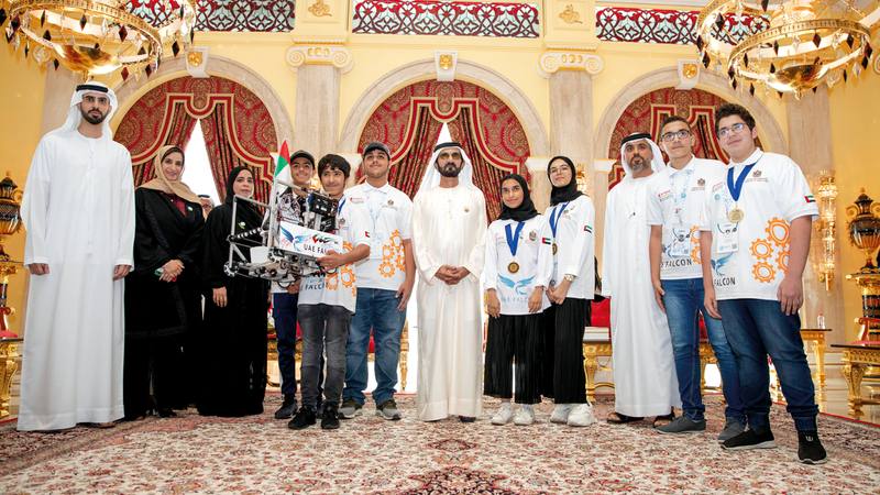 محمد بن راشد يلتقي فريق الإمارات في بطولة العالم للروبوتات