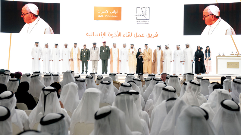 وتم تكريم 14 شخصية ومبادرة فردية وجماعية على مستوى دولة الإمارات، وشملت قائمة المكرّمين كلاً من: فريق عمل لقاء الأخوة الإنسانية، برئاسة سموّ الشيخ منصور بن زايد آل نهيان، نائب رئيس مجلس الوزراء وزير شؤون الرئاسة، وسموّ الشيخ عبدالله بن زايد آل نهيان، وزير الخارجية والتعاون الدولي.