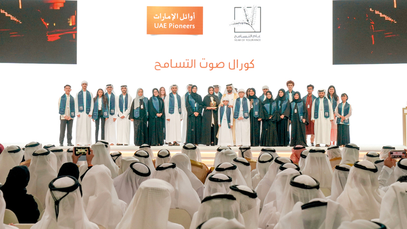 وتم تكريم كورال صوت التسامح، برئاسة وزيرة دولة لشؤون التعليم العام، جميلة بنت سالم مصبح المهيري، الذي يضم أكثر من 400 طالب يمثلون 40 جنسية من 68 مدرسة حكومية وخاصة، تحت إشراف وزارة التربية والتعليم، من الأطفال الذين مثلوا التسامح في أبهى حلله، وقدموا صورة مميزة للإبداع الذي لم يتوقف عند الفن فحسب، بل تخطاه إلى نقل قيم التسامح والمشاعر الإنسانية.