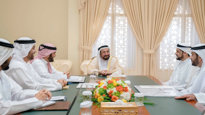حاكم الشارقة خلال ترؤسه اجتماع مجلس التخطيط العمراني. من المصدر