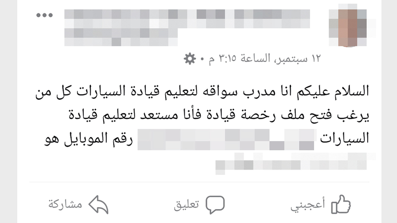 وعرضت مدربة تقديم حصص تعليم السياقة للفتيات، مؤكدة أنها تساعدهن على اجتياز اختبار المواقف، وتعلمهن أساسيات القيادة. وأضافت أنها تقدم أيضاً «دورات تنشيطية للحاصلات على الرخصة، للسيدات اللائي لم يقدن منذ فترة طويلة».