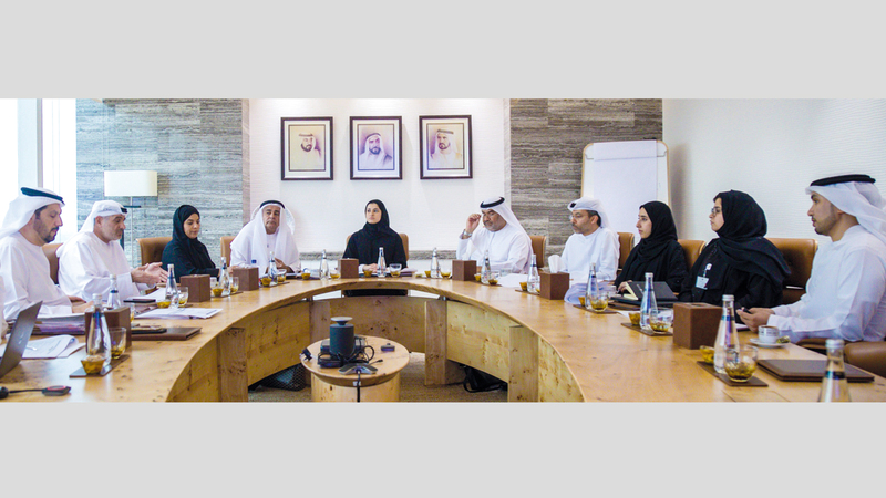 سارة الأميري وأعضاء مجلس علماء الإمارات خلال الاجتماع. من المصدر