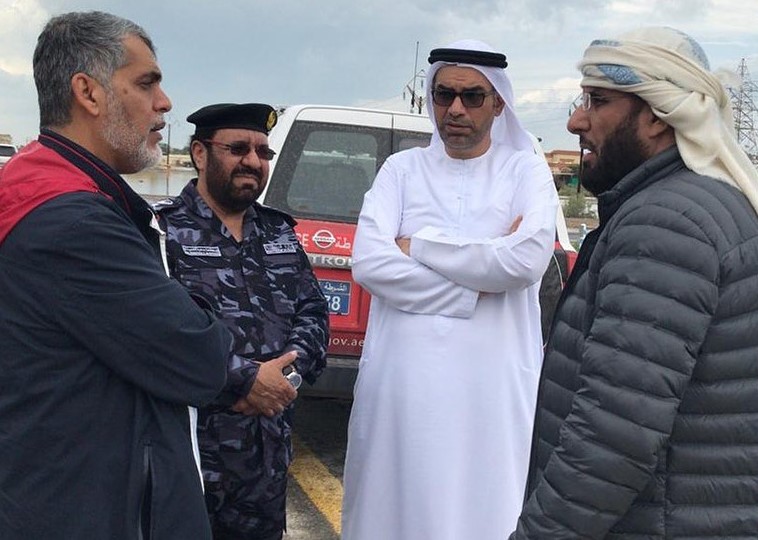 تفقد فريق من إدارة الطوارئ والأزمات والكوارث المحلي بإمارة رأس الخيمة، مكون من مدير عام دائرة الخدمات العامة برأس الخيمة المهندس أحمد الحمادي ومدير عام بلدية رأس الخيمة، المهندس منذر بن شكر الزعابي ومدير عام العمليات المركزية في شرطة رأس الخيمة العميد الدكتور محمد سعيد الحميدي، المناطق التي تأثرت بسبب سقوط الأمطار في رأس الخيمة.