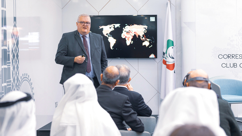 ستروبانتس خلال إحاطة إعلامية في نادي المراسلين بأبوظبي. من المصدر