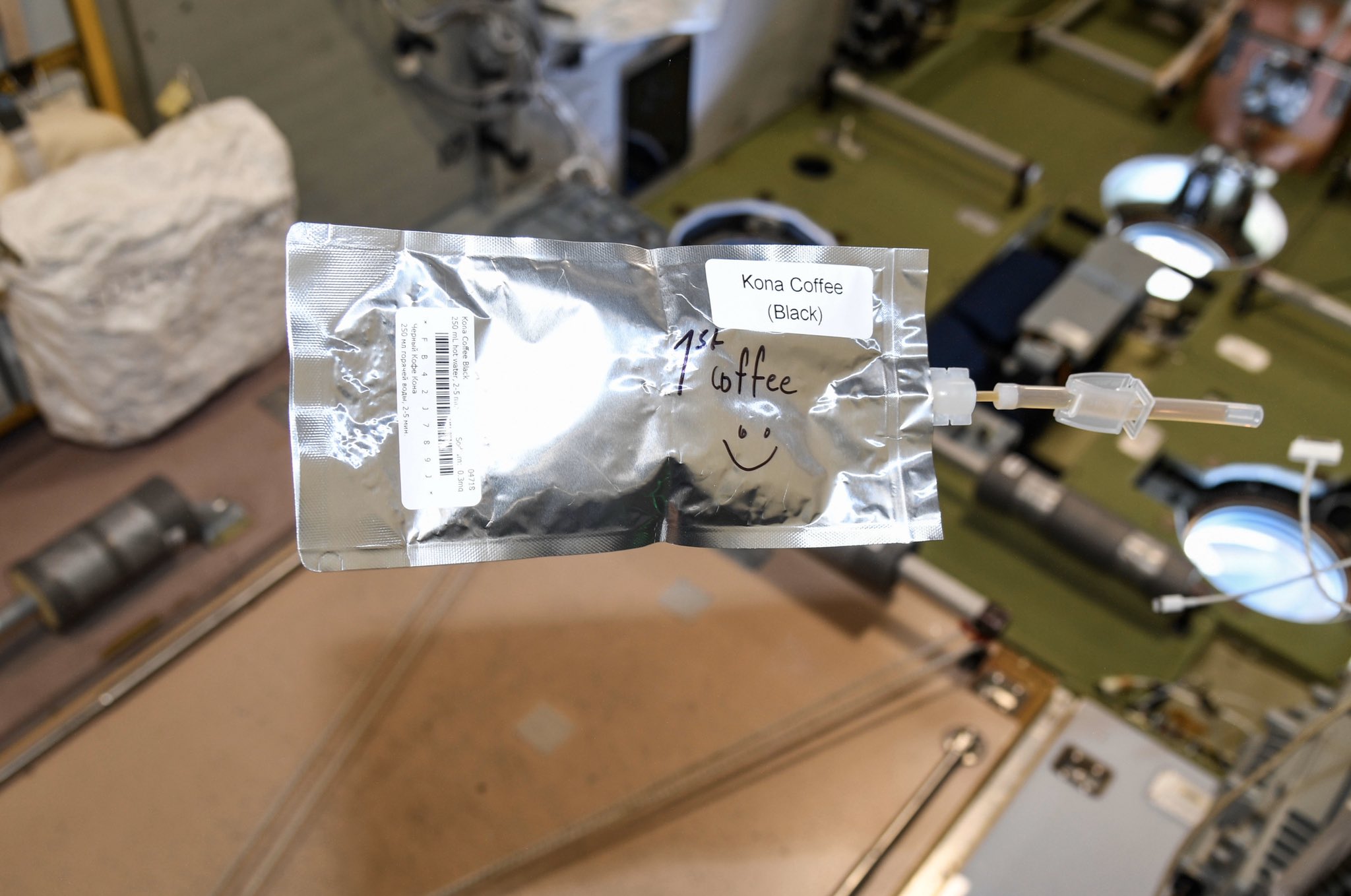 وأضاف أن القهوة تحضر في محطة الفضاء الدولية من خلال إضافة ماء ساخن إلى كيس مغلق يحتوي على قهوة محفوفة بالتجميد".