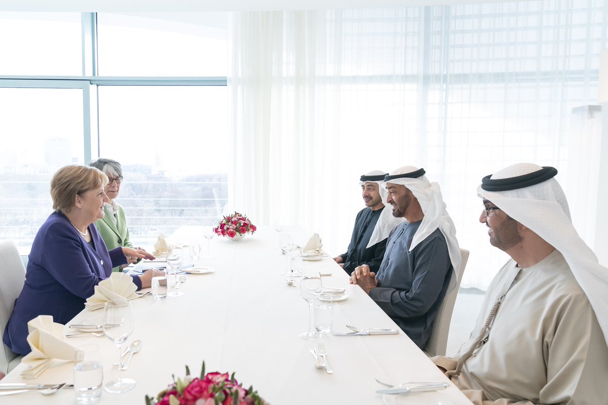 من جانبها شكرت المستشارة الألمانية إنجيلا ميركل، صاحب السمو الشيخ محمد بن زايد على زيارته لألمانيا، ودوره المهم في تعميق أواصر الصداقة الإماراتية - الألمانية خلال السنوات الماضية ..مؤكدة أنها حريصة على التشاور مع سموه بشكل مستمر حول قضايا الخليج العربي والشرق الأوسط وأن الإمارات وألمانيا تشتركان في العمل من أجل السلام والتنمية وتعزيز قيم التسامح والتعايش ومواجهة التطرف والإرهاب في العالم.