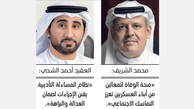 وتفصيلاً، قال رئيس لجنة دبي للموارد البشرية العسكرية، محمد سعد الشريف، إن اللجنة أصدرت قرارات تنظيمية تتعلق بآلية لصرف منحة الوفاة للمعالين من أبناء المنتسبين العسكريين بشكل فوري دعماً لأسرة المنتسب المتوفى، مؤكداً أن هذا يعزز التماسك الاجتماعي، ويعكس مدى الاهتمام والرعاية التي يحظى بها ذوو المنتسبين.