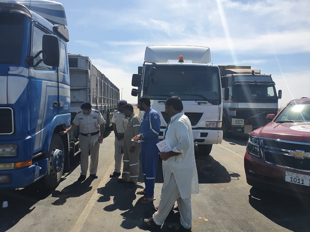 شرطة أبوظبي توعي ميدانيا سائقي الشاحنات بالقيادة الآمنة
