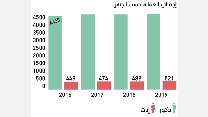 وأفادت بارتفاع إجمالي عدد العاملين من فئة الذكور خلال العام الماضي إلى أربعة ملايين و573 ألف عامل، مقابل أربعة ملايين و507 آلاف عامل تم تسجيلهم خلال 2018، بزيادة بلغت 30 ألف عامل، وهو ما تكرر بالنسبة للعاملات من فئة الإناث، حيث زادت أعدادهن من 489 ألف عاملة في 2018، إلى 521 ألف عاملة العام الماضي، بزيادة 32 ألف عاملة.